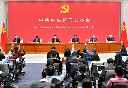 10月30日,中共中央在北京舉行新聞發布會,介紹黨的十九屆五中全會精神,并答記者問。 新華社記者 李鑫 攝